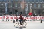 Les premiers commencent à tourner timidement. Lentement, ils dessinent un petit cercle sur la place du Palais Royal, devant le Conseil d’Etat. D’un coup il s’agrandit. Un deuxième cercle se forme, concentrique, et tourne en sens inverse. Enseignants-chercheurs, personnels biatos et étudiants défilent ensemble, en rond.