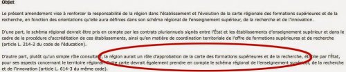 Pendant que François Hollande s’occupait de distraire la galerie en présentant des vœux pleins de belles paroles au monde éducatif, un sénateur socialiste, M. Vandierendonck, et un sénateur UMP, M. Hyest, faisaient de conserve voter par amendement, en toute discrétion, la régionalisation des formations de l’enseignement supérieur. Désormais, comme l’indiquent les deux sénateurs co-auteurs de l’amendement, « la région [aura] un rôle d’approbation de la carte des formations supérieures et de la recherche ».