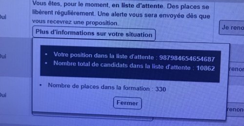 Et je suis 3279 sur la liste d’attente de Caen, ya 1050 place.